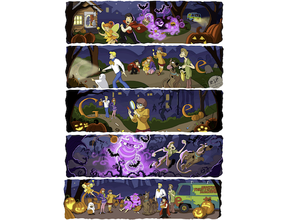 Le 31 octobre 2010, Google publie une bande dessinée sur le thème de Halloween, mettant en scène les personnages de Scooby Doo. Reste qu’il est difficile de reconnaître le logo de Google.