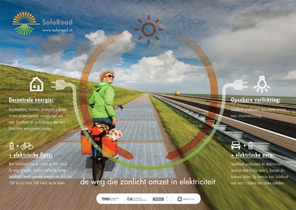Les pays-Bas, où le vélo règne en maitre, viennent d’inaugurer la première piste solaire cyclable. SolaRoad est un tronçon de route habillé de panneaux solaires.